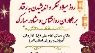 خبر برگزاری مراسم بزرگداشت روز روانشناس و مشاور ، 5شنبه 9 اردیبهشت 17:30 الی 20 در صدا و سیمای استان البرز