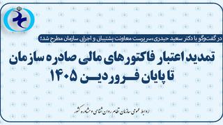 دکتر حیدری: پیرو مساعدت و دستور رئیس محترم سازمان، دکتر علیرضا آقایوسفی، ترتیبی اتخاذ گردید که اعتبار تمامی فاکتورهای صادره تا پایان فروردین ماه سال ۱۴۰۵ تمدید گردد.