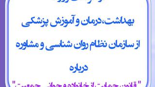 درخواست وزارت بهداشت، درمان و آموزش پزشکی از سازمان نظام روانشناسی و مشاوره درباره قانون حمایت از خانواده و جوانی جمعیت؛