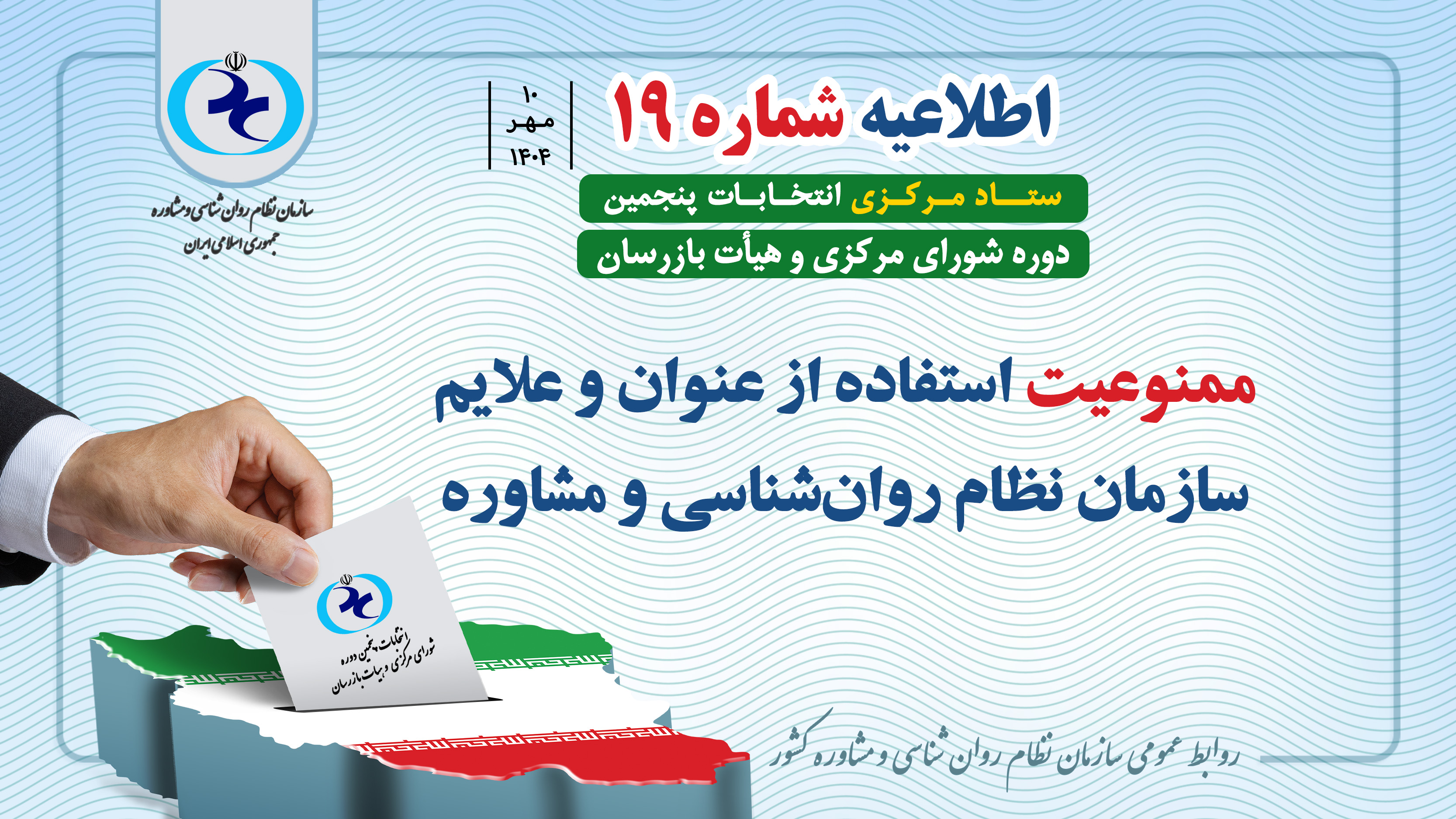 بر اساس ماده 8 دستورالعمل انتخابات پنجمین دوره شورای مرکزی و هیات بازرسان سازمان نظام روانشناسی و مشاوره: « ایجاد هرگونه گروه یا کانال در رسانههای مجازی و یا هر گونه مصاحبه و یا وبینار با استفاده از عنوان و علائم سازمان نظام روانشناسی و مشاوره ممنوع است.»