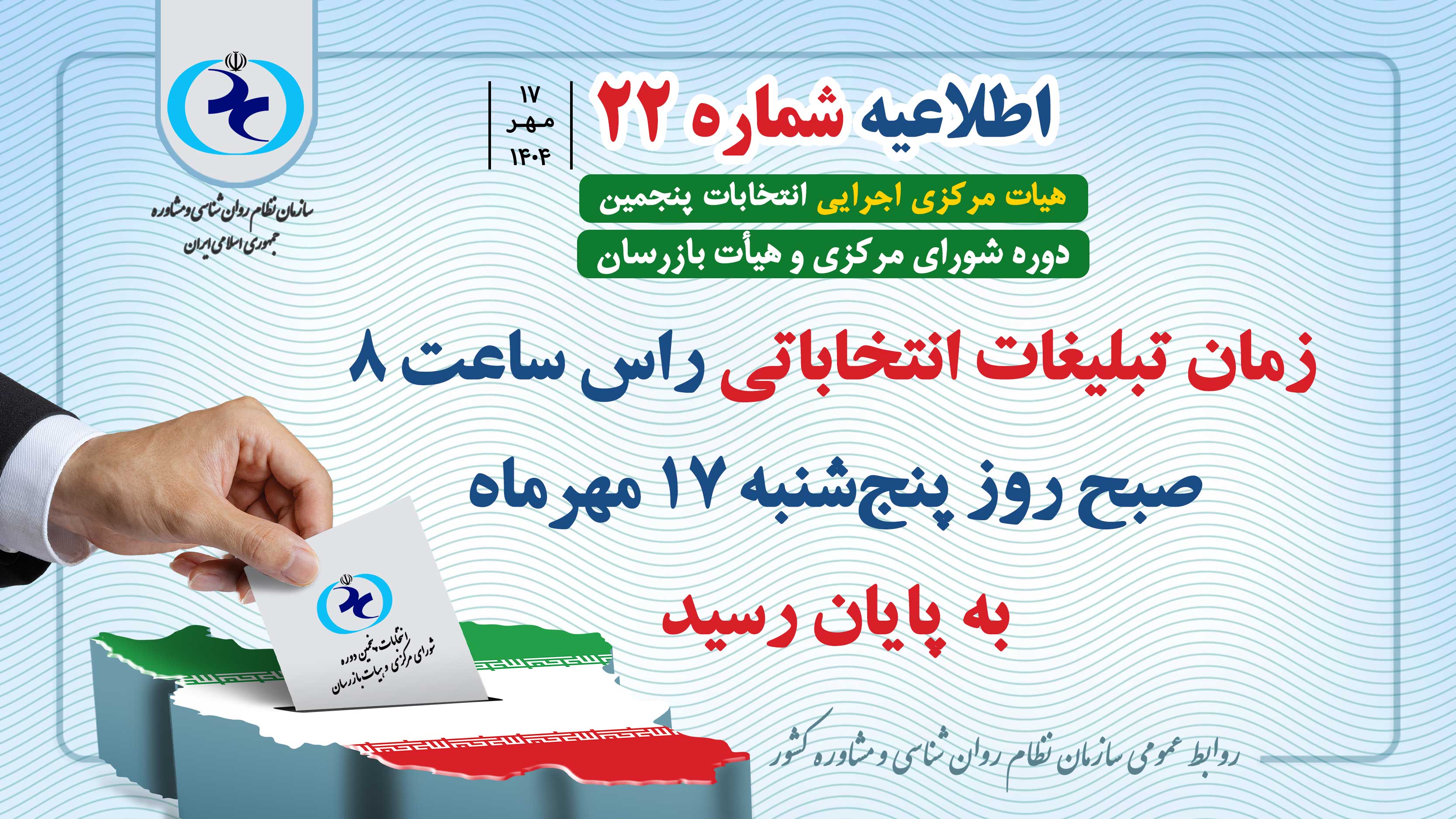 اطلاعیه شماره 22 | پایان زمان تبلیغات انتخاباتی پنجمین دوره شورای مرکزی و هیات بازرسان