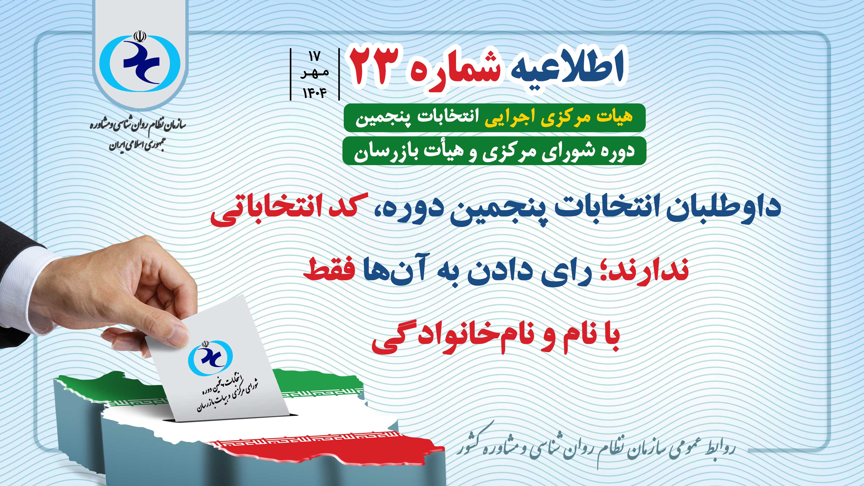اطلاعیه شماره 23 | داوطلبان انتخابات پنجمین دوره، کد انتخاباتی ندارند؛ رای دادن به آنها فقط با نام و نامخانوادگی