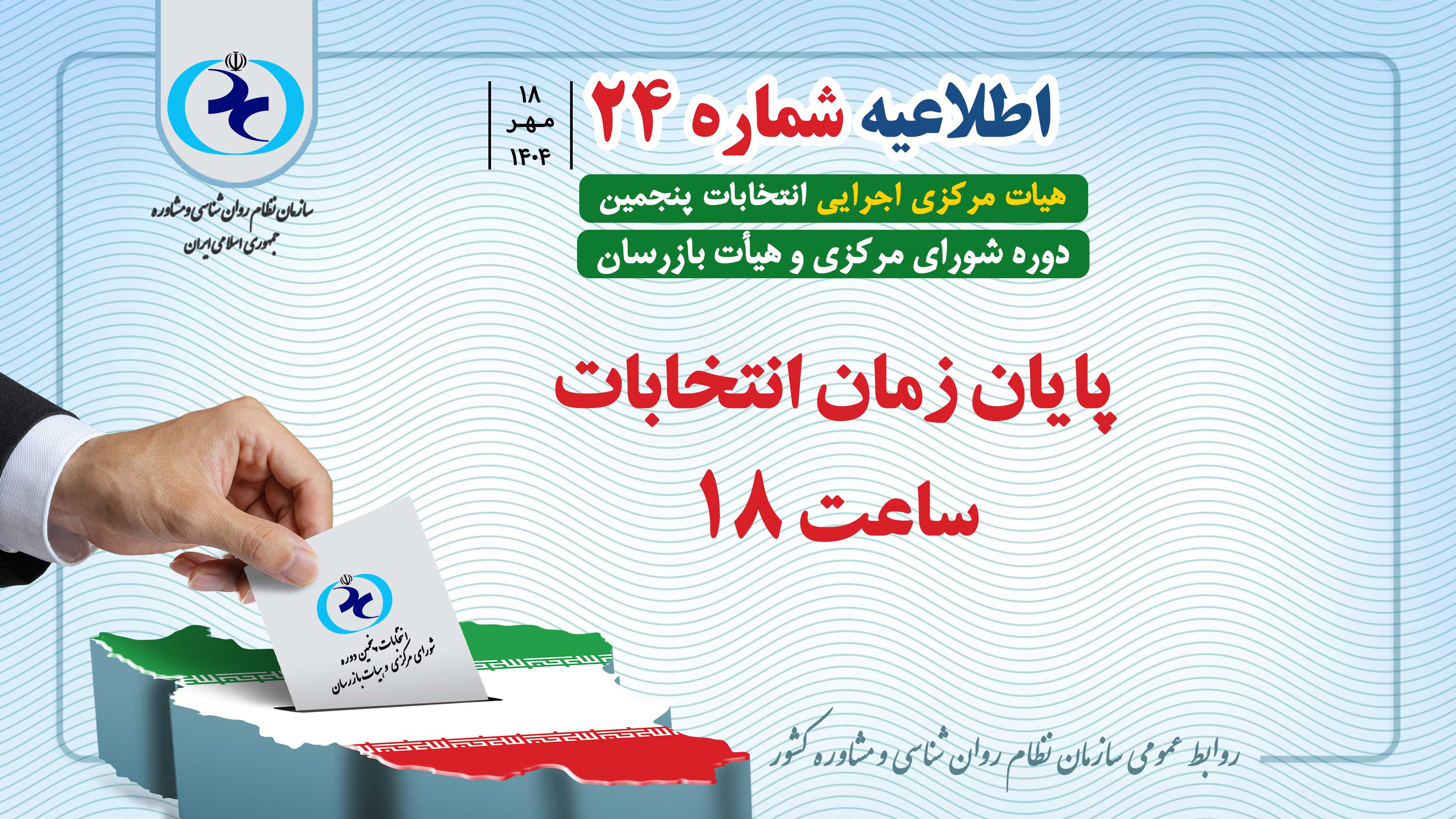 اطلاعیه شماره 24 | پایان زمان رایگیری ساعت 18؛ در صورت تمدید اطلاعرسانی خواهد شد